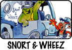 A highly comical pair, Snort and Wheez drive the rickety Dream Van to pick up completed dream boxes from the Dreamery and bring them to Captain Yawn’s Dream Ship for nightly delivery to sleeping children. There is a large fleet of Dream Vans, but Snort and Wheez are stuck with the van that tends to break down on the Shushybye Skyways.
